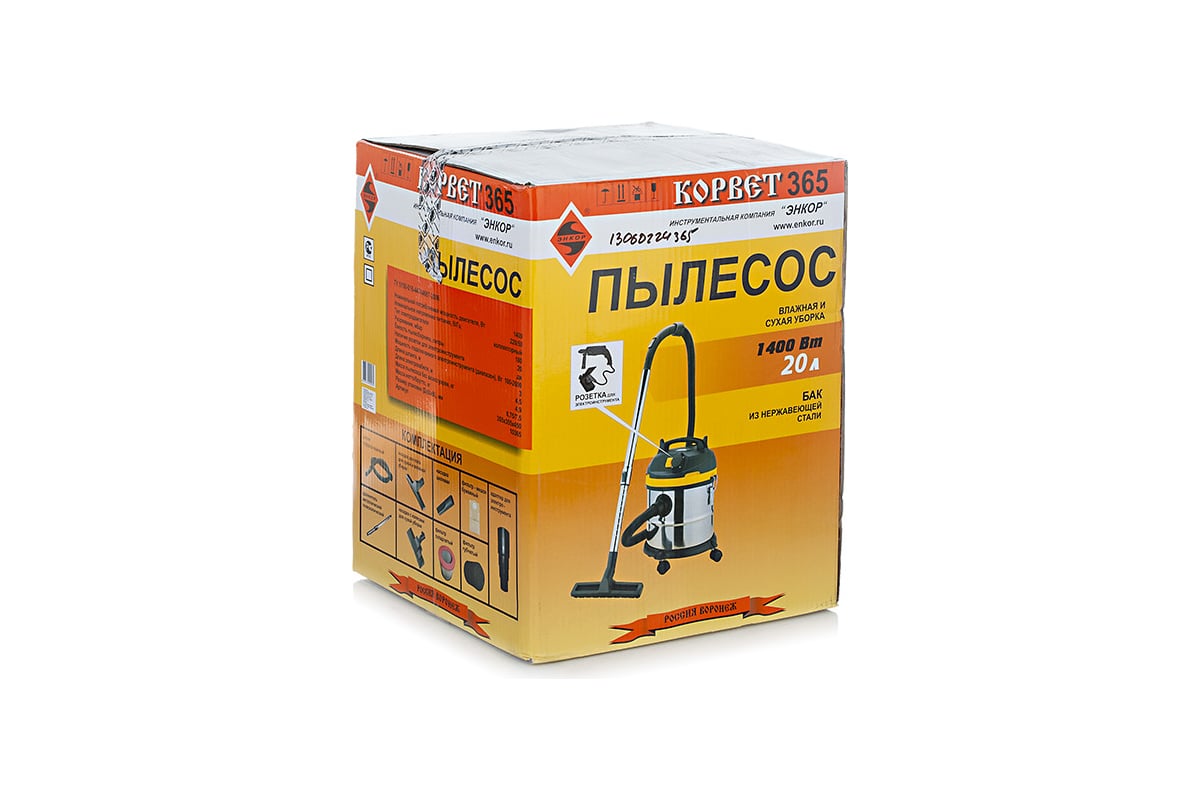Пылесос Энкор Корвет-365 93650 предназначен для сухой и влажной уборки помещений, также имеется возможность подключения электроинструмента мощностью от 100 до 2000 Вт. Модель обладает внушительным рабочим ресурсом и отличной производительностью. На выбор имеются два режима работы: автономный (для сухой и влажной уборки) и синхронный (для работы с электроинструментом). Бак изготовлен из нержавеющей стали, что обеспечивает аппарату длительный срок службы. Длина электрокабеля 4,5 м.