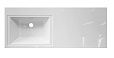 Раковина из литьевого мрамора имеет длинную платформу, которая выходит далеко за пределы тумбы. Она предназначена для того, чтобы установить с левой стороны от тумбы стиральную машину. Платформа имеет такую длину, которая позволит спрятать под нее машинку средних размеров с фронтальной загрузкой.