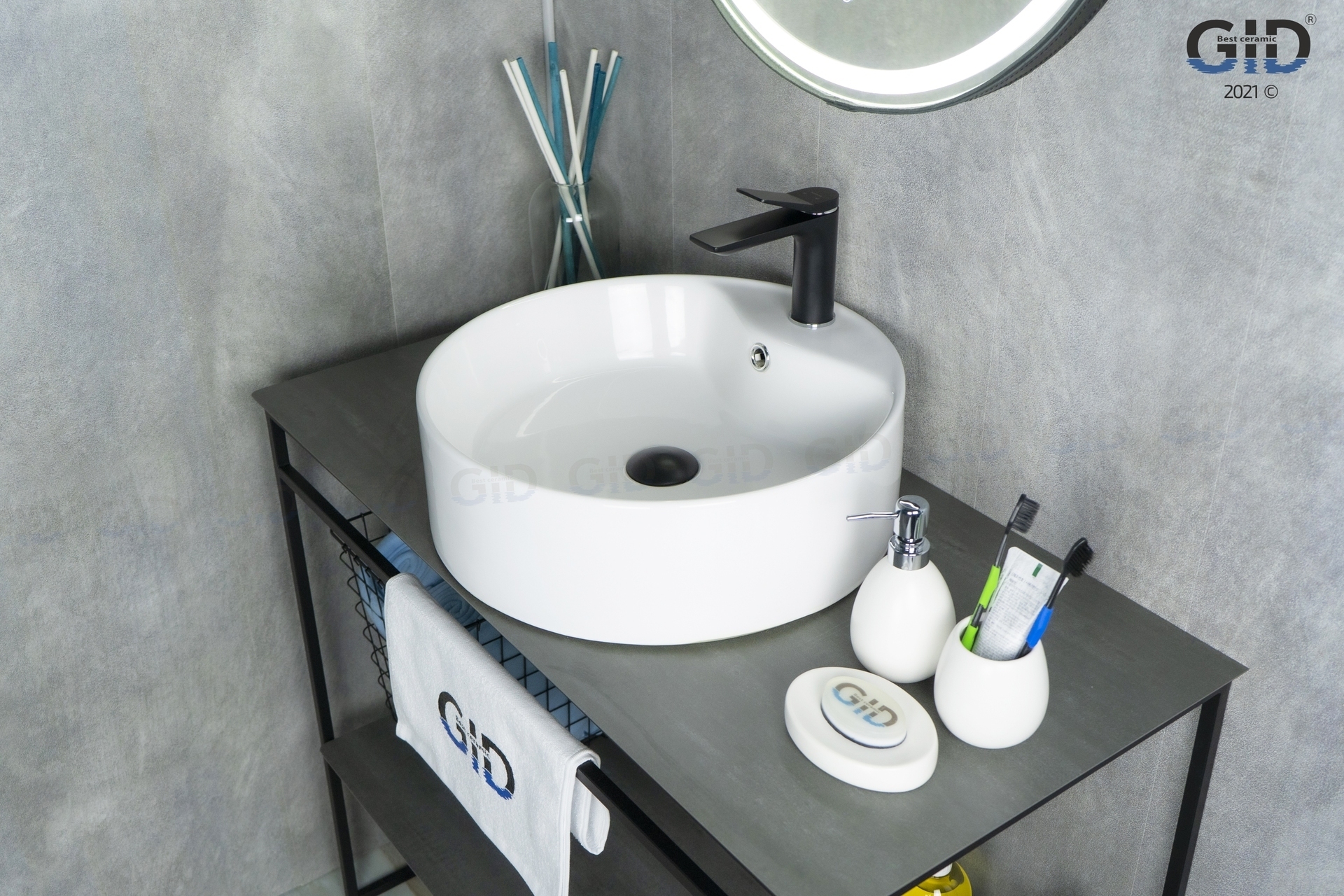 Раковина Gid N9008b 46 см накладная. С отверстием для смесителя, с переливом.