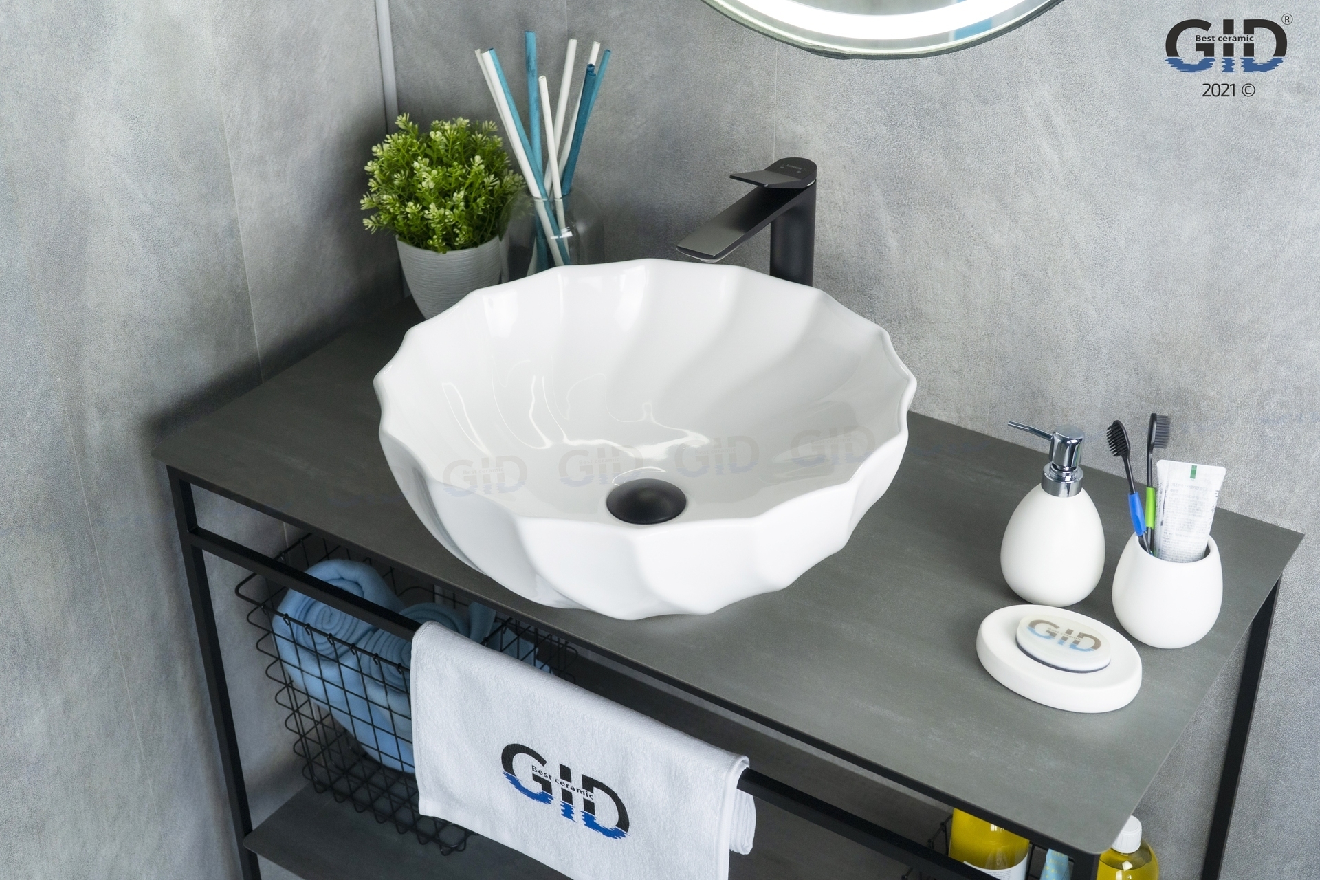 Раковина Gid N9073 46 см накладная. Без отверстия под смеситель, без перелива.