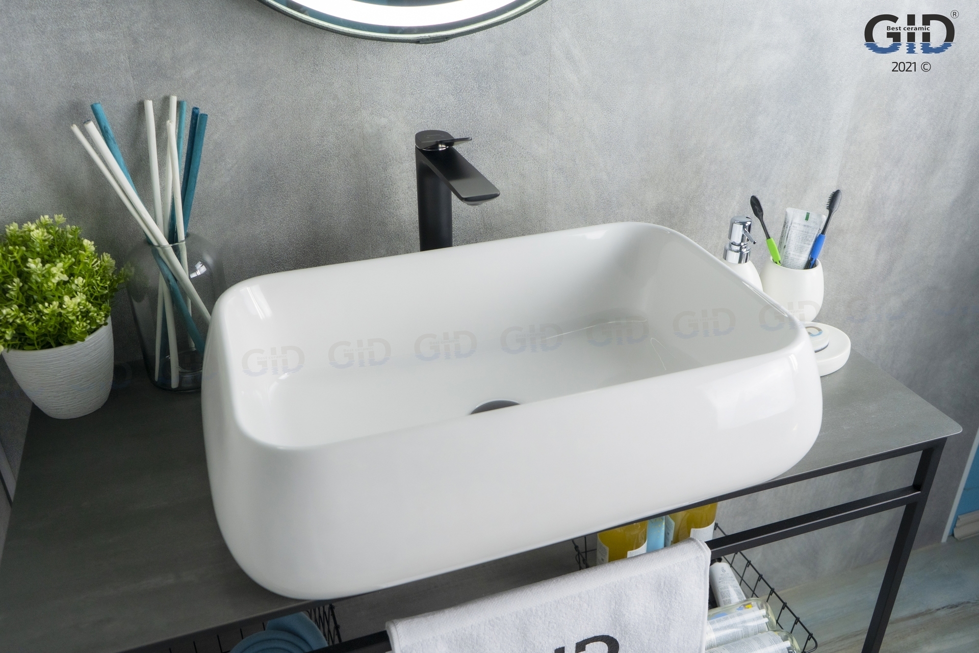 Раковина Gid N9239 60 см накладная. Без отверстия под смеситель, без перелива.