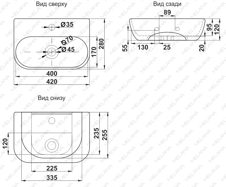 Мелана выпускает просто огромный ассортимент раковин любого размера и дизайна. Накладные раковины выполнены не только в классических вариантах, но и в стиле авангард. Компания смело экспериментирует, создавая такие изделия в форме морской ракушки, с рельефными краями или асимметричной формы. Мини-раковины рассчитаны на небольшое помещение, они не занимают много места и просто монтируются. Врезные раковины прекрасно встраиваются в уже готовую столешницу из дерева или камня.