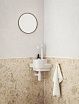 Круглый умывальник дополняется элементом дизайна в виде кронштейна белого/черного цвета или из нержавеющей стали. Магия элегантности объединяет в один тон сочетание консоли, смесителя, сифона и слива.