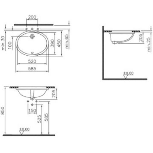 - Встраиваемая раковина Vitra Arkitekt 6069B003-0012 оснащена отверстием перелива предохраняющим раковину от переполнения при засоре слива, но без отверстия под смеситель.