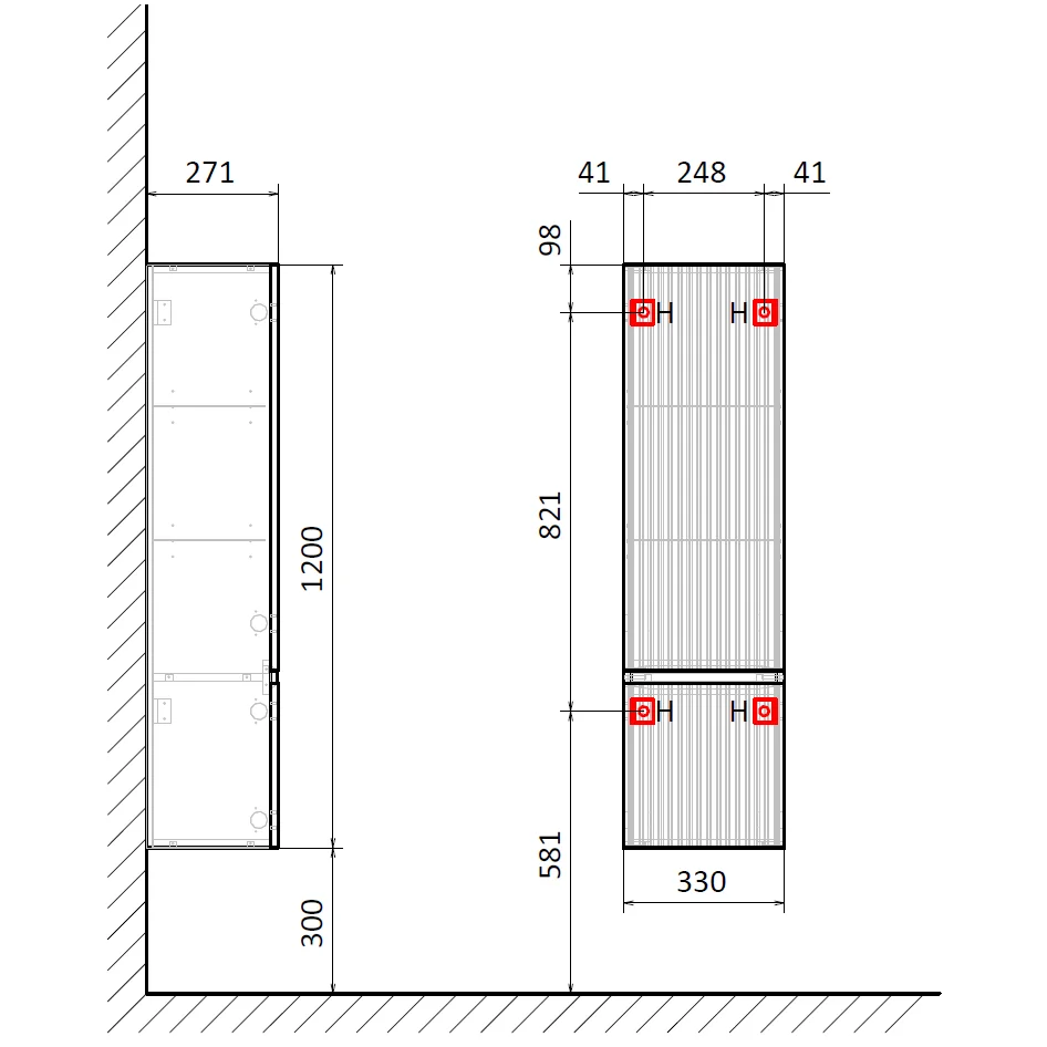 - Система хранения: две распашные двери с доводчиками, полки внутри