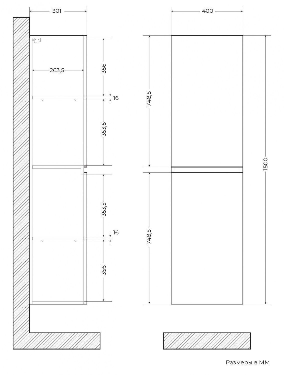 - Система хранения: две распашные дверцы, две полки внутри