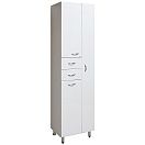 Шкаф пенал Руно 50 R с корзиной, правый - отделение для халатов с одной распашной дверью справа, слева - две распашные дверцы и два выдвижных ящика. В верхнем отделении - одна внутренняя полка, нижнее отделение комплектуется полкой и корзиной для белья. Ящики - на шариковых направляющих, петли со встроенным доводчиком, ручки - 5 шт, крючок - 1 шт, ножки хром - 2 шт, ножки пластик - 2 шт. Выпускается только в правом исполнении.