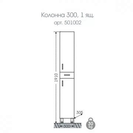Шкаф пенал Санта Стандарт 501002 30 см, белый