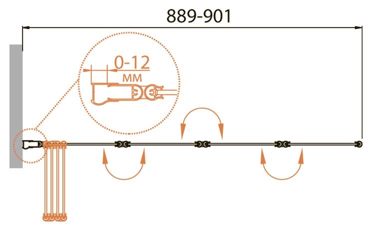- Габариты с диапазоном регулировок (889-901)х1400 мм
