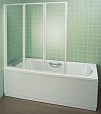 Штора состоит из трех подвижных частей, которые складываются вовнутрь ванны. Штора подходит для ванны BeHappy и других прямоугольных ванн с ровным передним бортом (Classic, Sonata, Vanda II и Lilia) или какой-либо классической прямоугольной ванны с ровным передним бортом. Стандартная высота шторы 1400 мм. Штора для ванны VS3 100 предназначена для ванны BeHappy 150, VS3 115 - BeHappy 160, VS3 130 - BeHappy 170. Штора для ванны VS3 100 в сложенном виде имеет ширину 340 мм, VS3 115 — 392 мм, а VS3 130 - 444 мм. Повернув VS3 на 180°, получите Л/П варианты входа. Возможно изготовление атипичной шторы для ванны.
