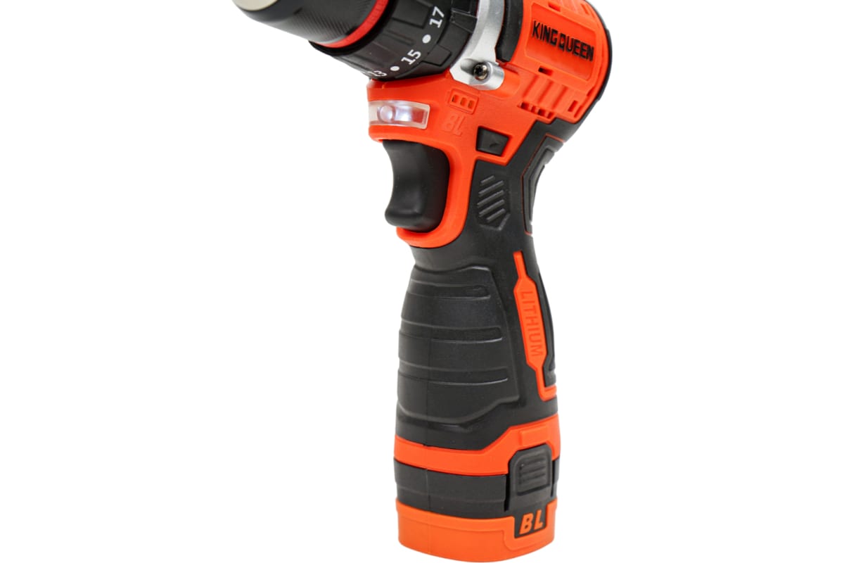 Бесщеточный шуруповерт KINGQUEEN 16.8 В оснащен двухскоростным редуктором. Благодаря быстрозажимному патрону, смена оснастки не занимает много времени. Удобная рукоятка обеспечивает комфортный рабочий процесс. Этот шуруповерт работает от Li-ion аккумулятора, плюс которого в отсутствии эффекта памяти: его можно заряжать, не дожидаясь полной выработки заряда. Аккумуляторный шуруповерт KINGQUEEN применяется для сверления отверстий в древесине, металле, кирпиче, а также закручивания крепежа. Незаменим при отделочных и ремонтных работах. Подсветка облегчает эксплуатацию инструмента в слабоосвещенных помещениях. Функция реверса обеспечивает безопасное извлечение сверла из материала.