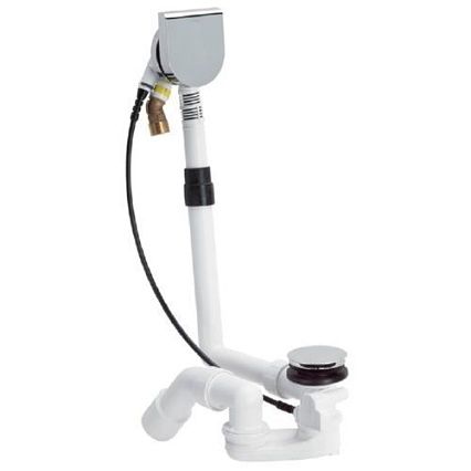 Комплектация: хромированная поворотная накладка переливного отверстия (верхняя), хромированная пробка со штоком клапана, гидрозатвор, сливное колено 45°, хромированная розетка сливного отверстия