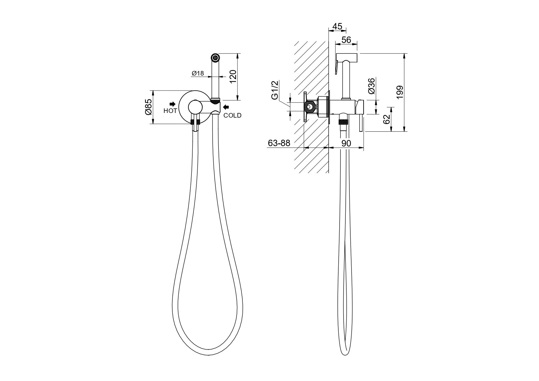 - В комплекте гигиенический душ, держатель для душа и шланг