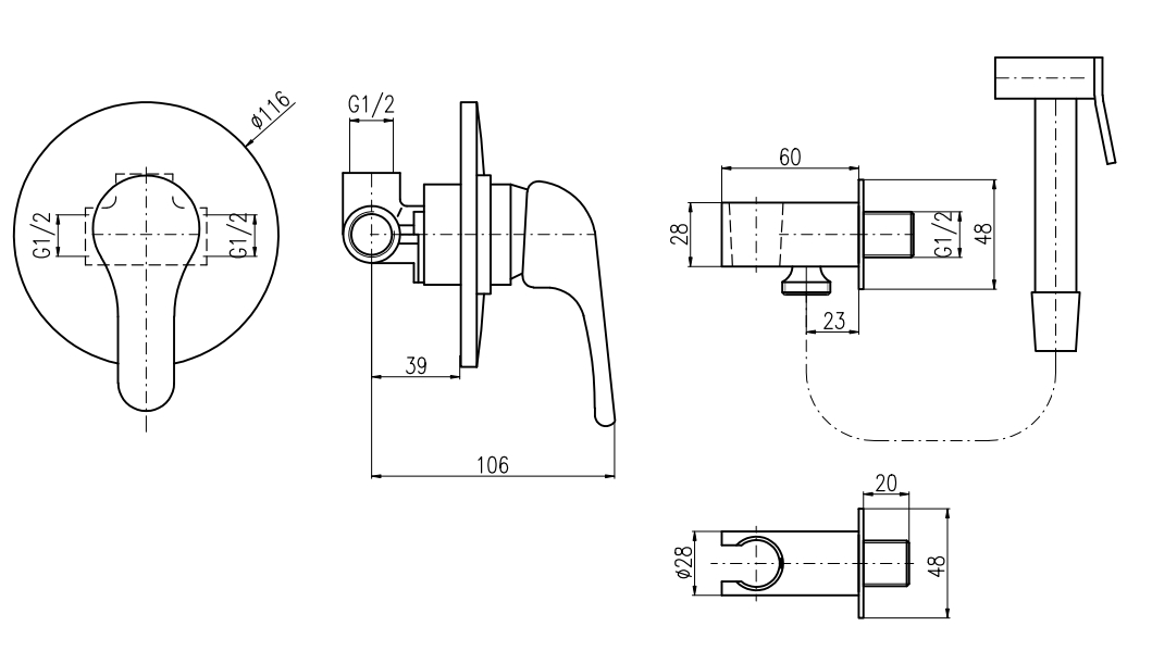 Смеситель для биде Rav Slezak Sazava SA042 с гигиеническим душем, хром