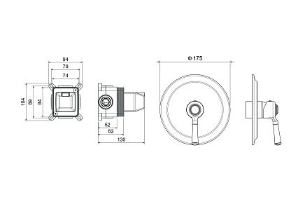 - Смеситель из латуни с установочной коробкой на 1 потребителя (внешняя и скрытая часть)