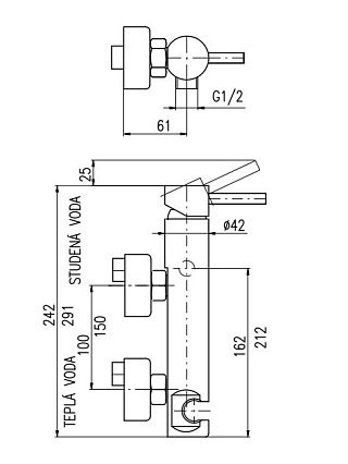 Смеситель для душа Rav Slezak Seina SE980.5. Регулировка температуры и напора воды происходит с помощью металлического рычага. Керамический картридж смесителя производства Венгрии 35 мм KEROX.