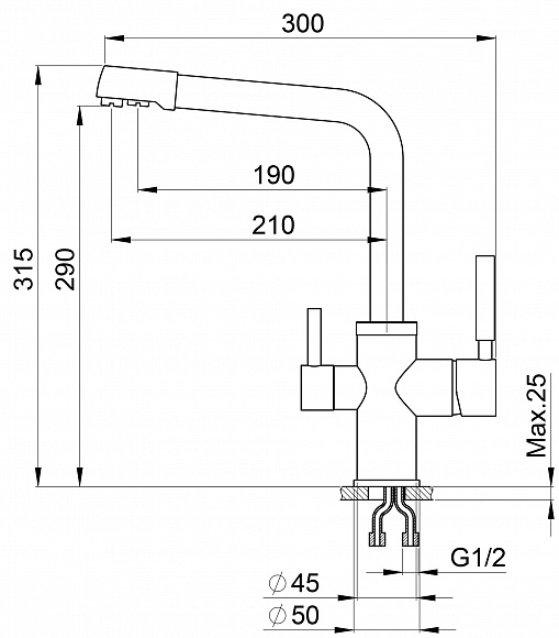 - Комплектация Гибкая подводка, комплект креплений, переходник для подключения фильтра с питьевой водой