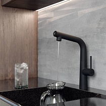 Cмеситель для кухни Pure с отдельным каналом для подачи фильтрованной воды не требует дополнительного отверстия в мойке под фильтр. К смесителю можно подключить фильтр любого производителя и наслаждаться чистой водой прямо из смесителя – она удобно включается простым нажатием кнопки на изливе. Сочетание хрома и матовых черных деталей делает смеситель стильным и оригинальным.