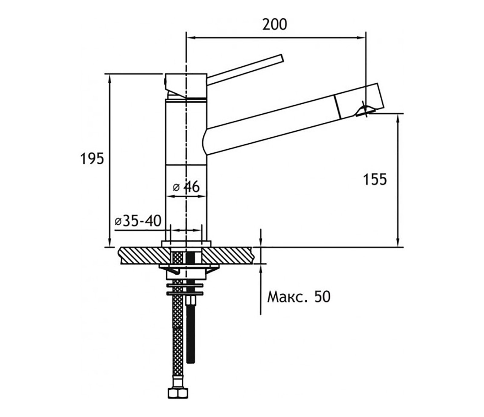 - Высокий излив подходит для моек с двумя чашами, а также позволяет справляться с мытьем габаритной посуды