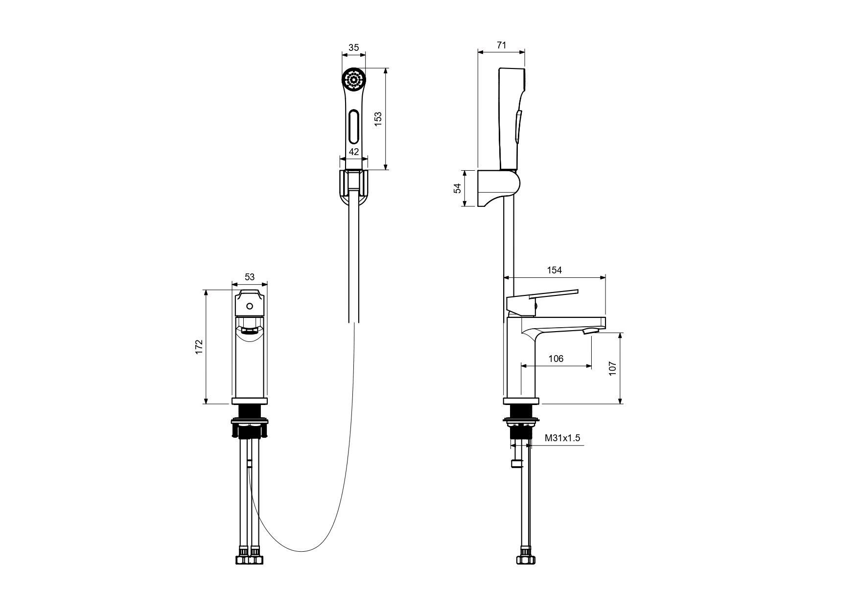 - Оптимальная длина подводкиГигиеническая лейка, оснащена нажимным механизмом для остановки потока воды