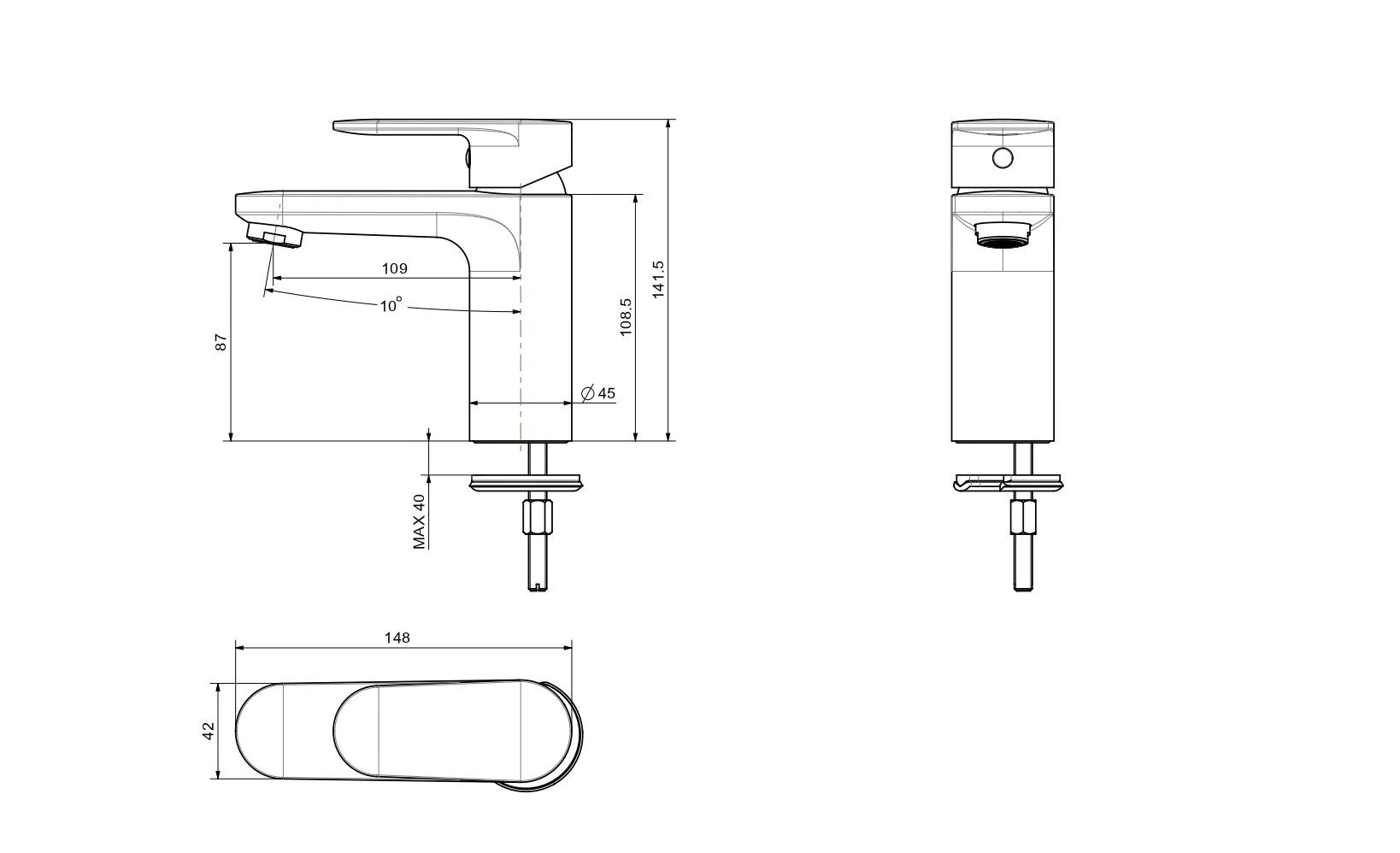 - Максимальный объем расхода воды при 3 барах: 16,40 л/мин