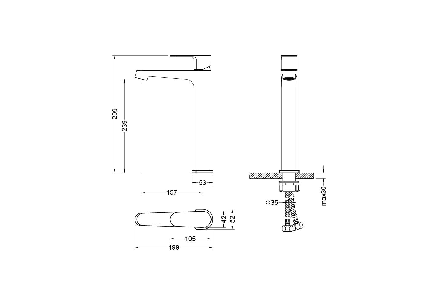 - Оснащен высоким изливом, удобен для мытья крупных предметов