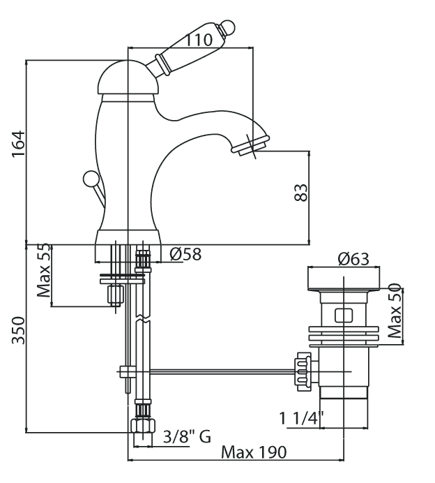 - Оснащение: донный клапан, аэратор