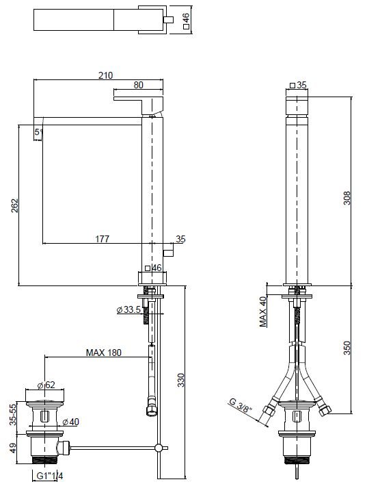 Смеситель для раковины Cezares UNIKA-LC-NOP-W0 черный матовый