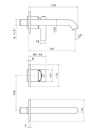 - Встраиваемый в стену однорычажный смеситель для раковин