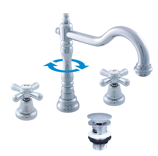 Смеситель для раковины Morava retro MK332.5 с двухвентильной системой управления и донным клапаном. Эта модель предполагает монтаж на три отверстия. Удобная система управления с помощью металлических рычагов. Керамическая кран-букса производства Германии. Поворотный излив обеспечивает комфортное использование смесителя. В комплект входит донный клапан системы Click-Clack.