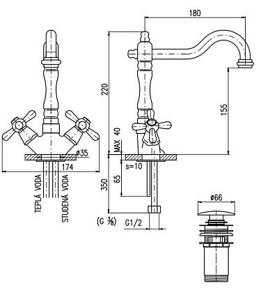 Современный смеситель для раковины Rav Slezak Morava retro MK521.5/8SM c прочным монолитным корпусом. Регулировка температуры и напора воды происходит с помощью двух металлических вентилей с надписями "Hot" и "Cold". Надежная керамическая кран-букса производства Германии. Гибкая подводка длиной 35 см позволяет без проблем осуществить подключение смесителя. В комплект входит донный клапан системы Click Clack.