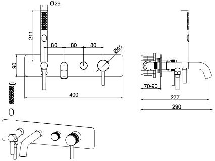 - Комплектация - смеситель, скрытая монтажная часть, душевая лейка, держатель для душа, шланг