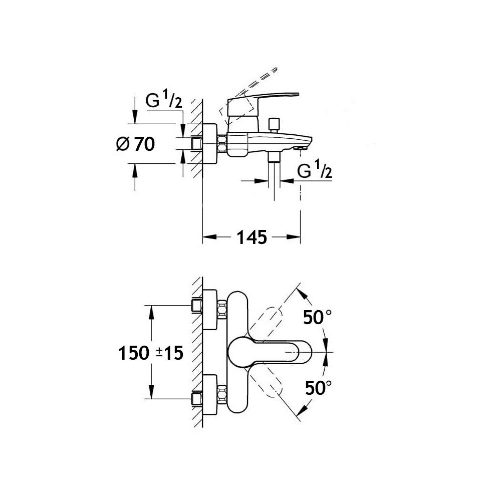 - Межосевое подключение: 150мм ± 22 мм