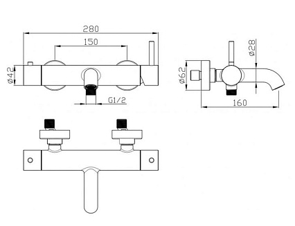 Смеситель для ванны AQUAme Siena AQM6212BG