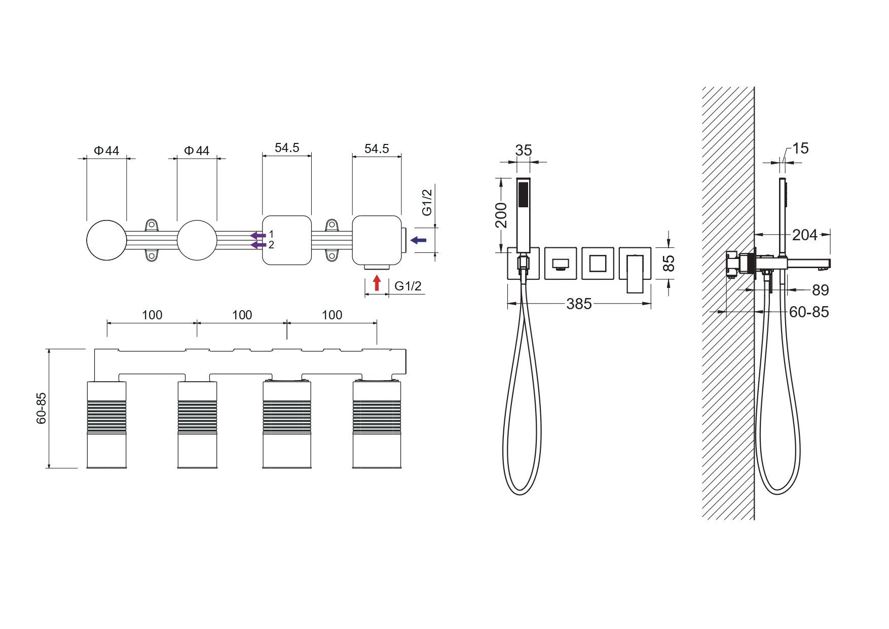 - Максимальный объем расхода воды ручного душа при 3 барах: 9 л/мин
