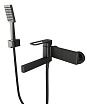 Смеситель для ванны Slide в стильном оттенке графит со складным изливом — стильное функциональное решение без лишних деталей, подойдет и для ванны, и для душевой кабины. Отверстие-петля на ручке выполняет декоративную и при этом практичную роль — ее легко захватить даже намыленной рукой и отрегулировать напор или температуру. В комплекте душевые аксессуары в тон смесителю — прямоугольной лейкой, гладким шлангом из ПВХ длиной 1,5 метра с защитой от перекручивания и держателем для лейки.