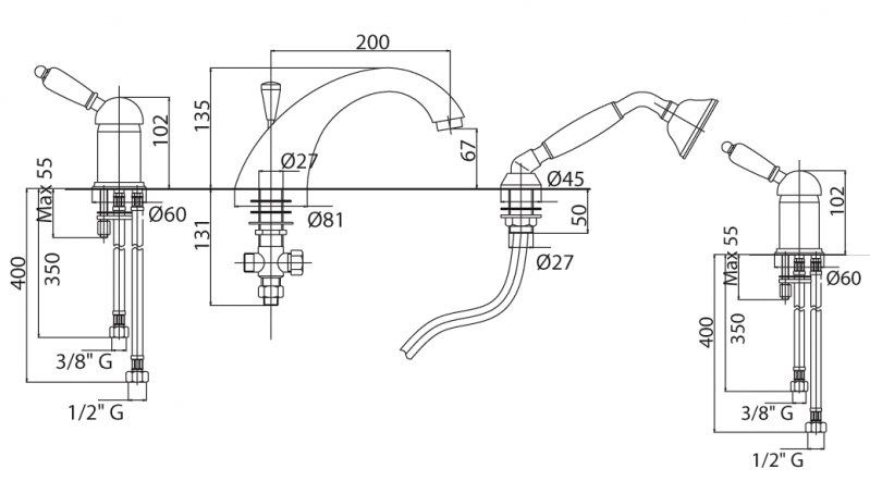 - Длина излива: 20 см