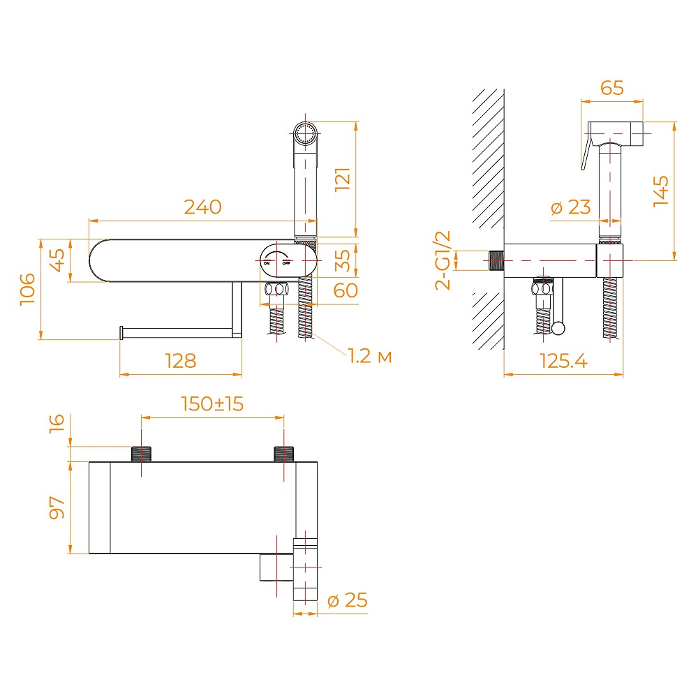 - Стильный высококачественный комплект гиг.душа RGW SP-222: смеситель с поворотным управлением с полочкой для телефона или мыла, с держателем туалетной бумаги или полотенца, душевая лейка со шлангом