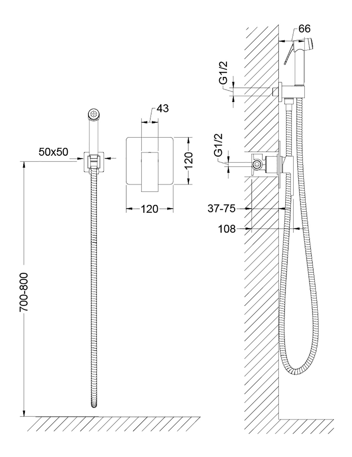 Все коммуникации, крепления и механизмы спрятаны в стену и закрыты декоративной накладкой, снаружи находится только рычаг управления смесителем и держатель гигиенической лейки с подключеним шланга, такая модель отлично сочетается с инсталляцией для унитаза. Длины шланга 1,2 метра хватает для решения гигиенических задач. Можно также использовать например, для мытья собаки после прогулки или наполнения ведра воды и т.д.