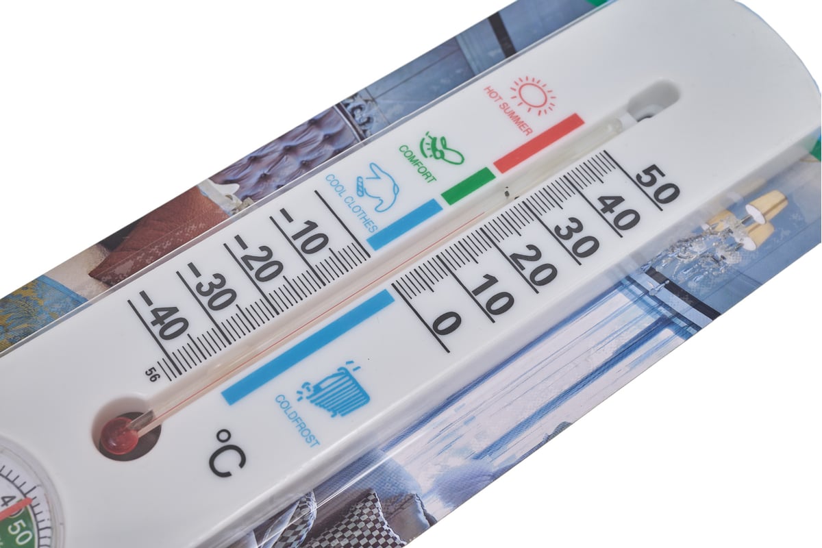 .Крупный контрастный термометр внешний-внутренний, с гигрометром.