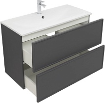 - В столешнице Арт предусмотрены 2 отверстия: под слив раковины и под смеситель с установкой на столешницу. Расположение смесителя – справа от чаши раковины