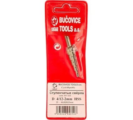 Ступенчатое сверло №0/5 (4,6,8,10,12) Bucovice Tools 641005 изготовлено из быстрорежущей стали, просверливает качественные ровные отверстия, без заусенец. Кроме того, сверло защищено от поломки при входе.