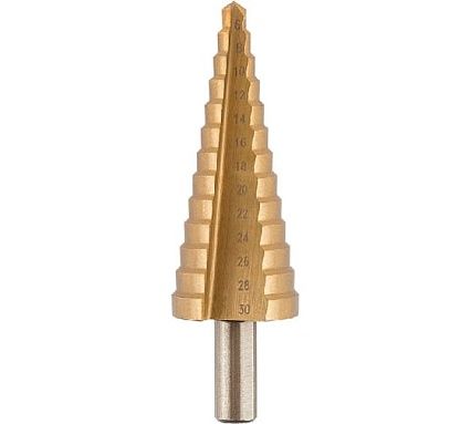 Сверло ступенчатое 6 мм, 8 мм, 10 мм, 12 мм, 14 мм, 16 мм, 18 мм, 20 мм, 22 мм, 24 мм, 26 мм, 28 мм, 30 мм.