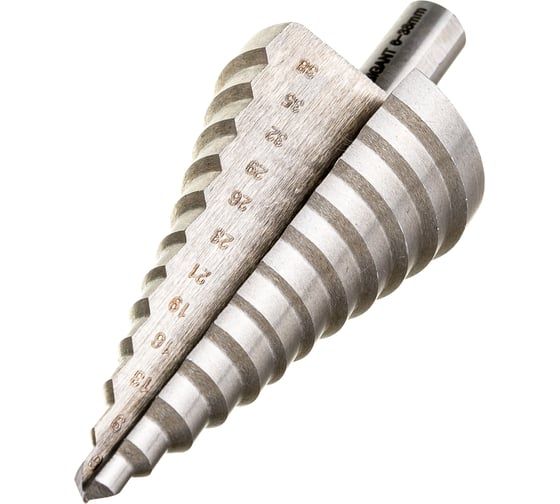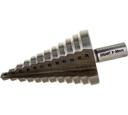 Сверло ступенчатое 6-38 мм, HSS Gigant GT-163 предназначено для получения отверстий различного диаметра без перестановки режущего инструмента. На каждой ступени есть маркировка фактического диаметра.