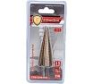 Strong Сверло ступенчатое для цветных металлов G1 4-32 мм, СTМ-52904032 предназначено для сверления отверстий разных диаметров в листовых и тонкостенных изделиях из стали до 4 мм, цветных металлов, нержавеющей стали и пластика. Каждый следующий размер имеет плавный переход в виде ступеньки, что позволяет получать аккуратное отверстие нужного диаметра.Диаметры ступеней: 4 мм, 6 мм, 8 мм, 10 мм, 12 мм, 14 мм, 16 мм, 18 мм, 20 мм, 32 мм.Диаметр хвостовика 10 мм. Основные характеристики и преимущества данного сверла: - Диапазон сверления: от 4 до 32 мм. - Изготовлено из качественных и прочных материалов для долговечности и точности сверления. - Имеет точные заточенные режущие кромки для быстрого и чистого сверления цветных металлов. - Цилиндрический хвостовик обеспечивает надежное крепление сверла в сверлильном станке или дрели. - Удобно использовать для сверления отверстий различного диаметра без необходимости смены сверла.