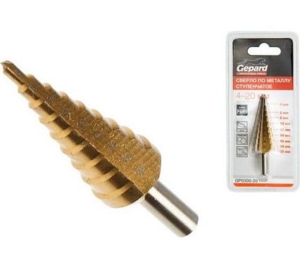 Сверло ступенчатое по металлу 4-20 мм Gepard GP0300-20 применяется для сверления отверстий различного диаметра. Отлично подходит для тонких материалов - цветных металлов, листовой стали, пластика, нержавеющей стали.