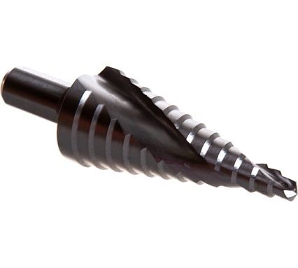 .Без замены одним ступенчатым сверлом можно просверлить несколько диаметров. Спиральная канавка сверла способствует мягкому сверлению и плавному переходу диаметров от ступеньки к ступеньке.