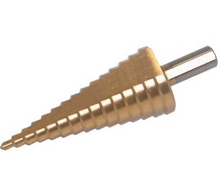 Ступенчатое сверло SKOLE предназначено для сверления отверстий мягких металлов, дерева, фанеры и пластика различного диаметра. Выполнено из быстрорежущей стали. Количество ступеней - 13. Диаметр - 4/8/12/16/20/24/28/32/36/40/44/48/52мм. Высота ступеней 7мм.