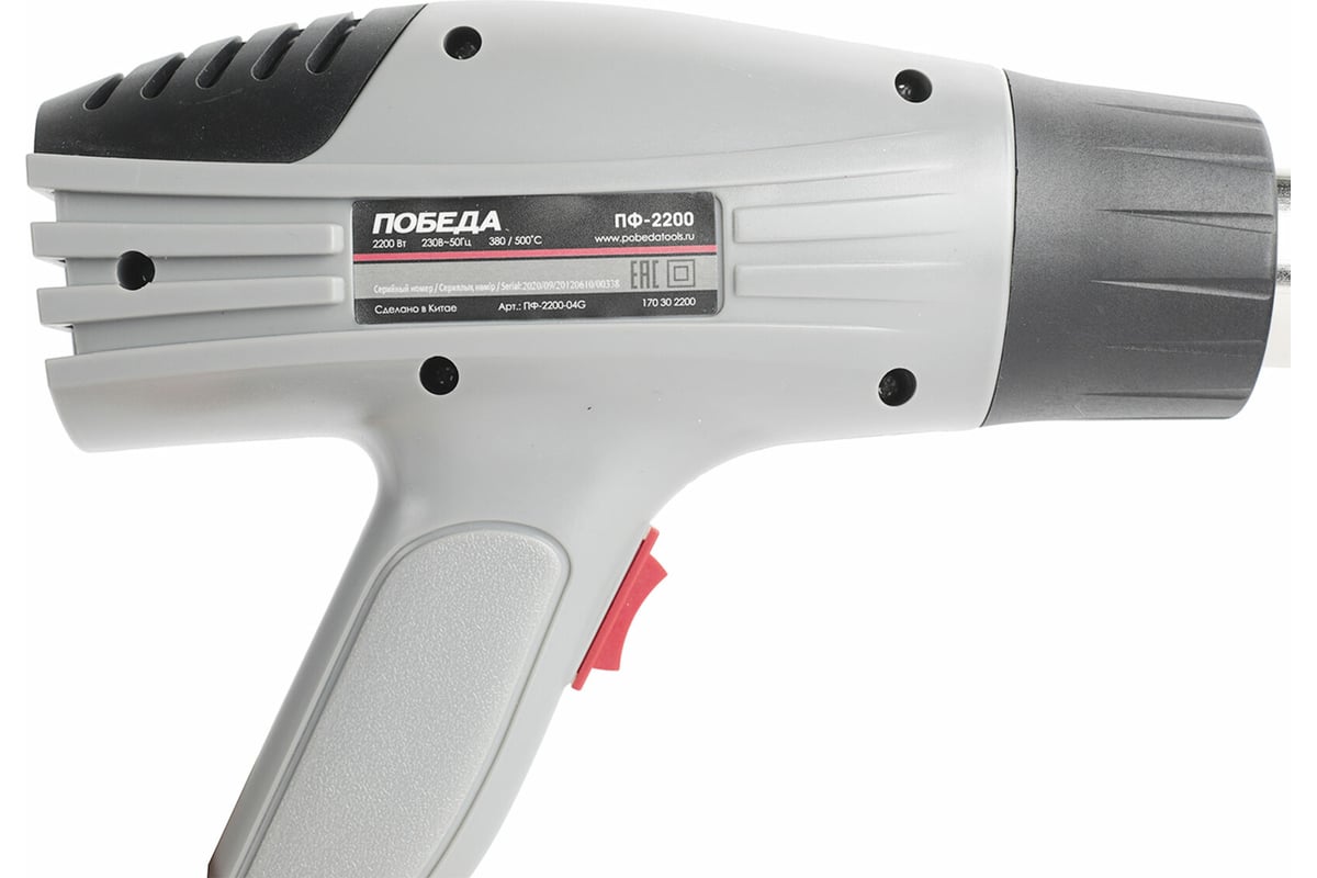 Технический фен Победа ПФ-2200 170302200 используется для прогрева замерзших труб, спаивания пластмасс, удаления красочных покрытий, разделения клеевых соединений.