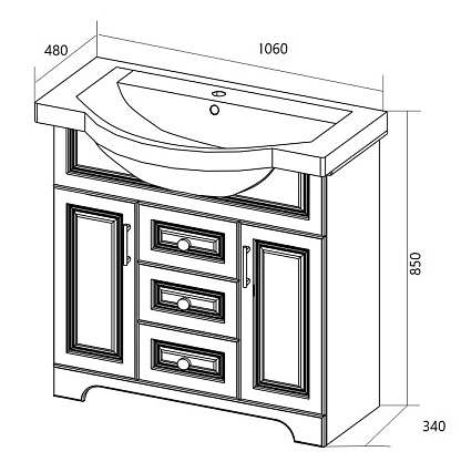 Отличительные черты тумбы с раковиной 1MarKa Прованс 105Н, белый глянец